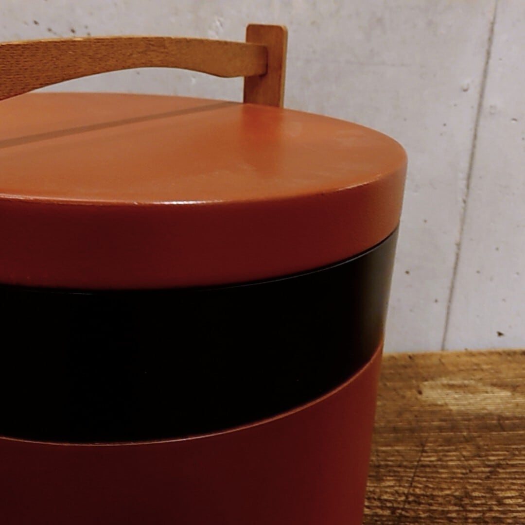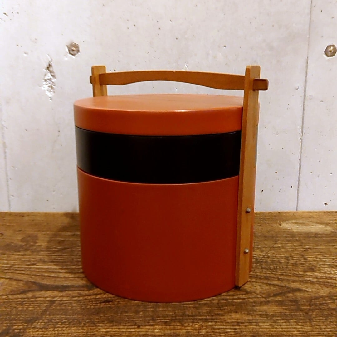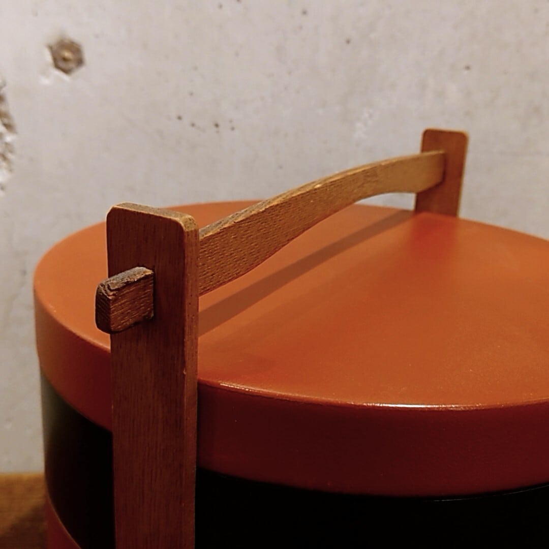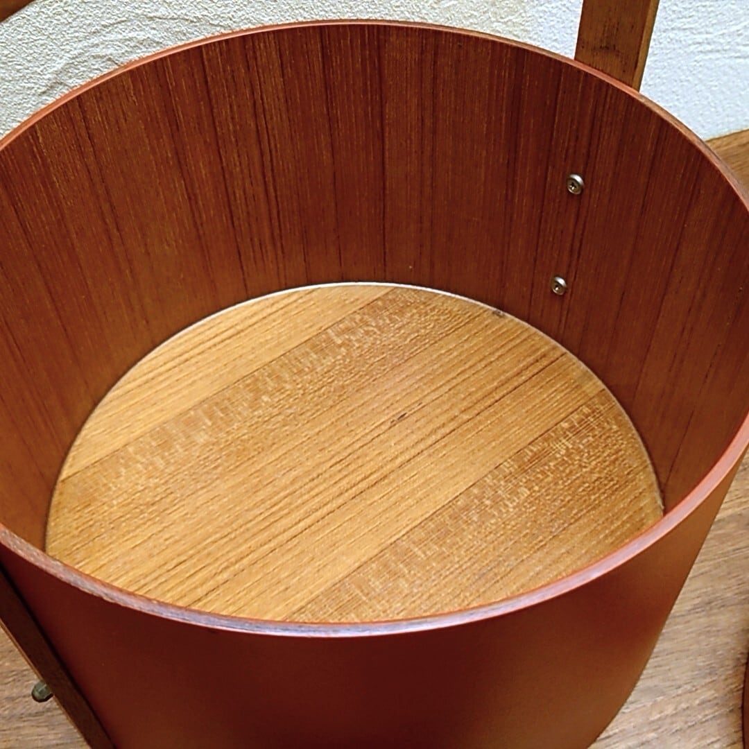 1960年代頃の日本のモダンデザイン隆盛期に製造されたと思われるチークプライウッドの手提茶櫃/手桶重です。