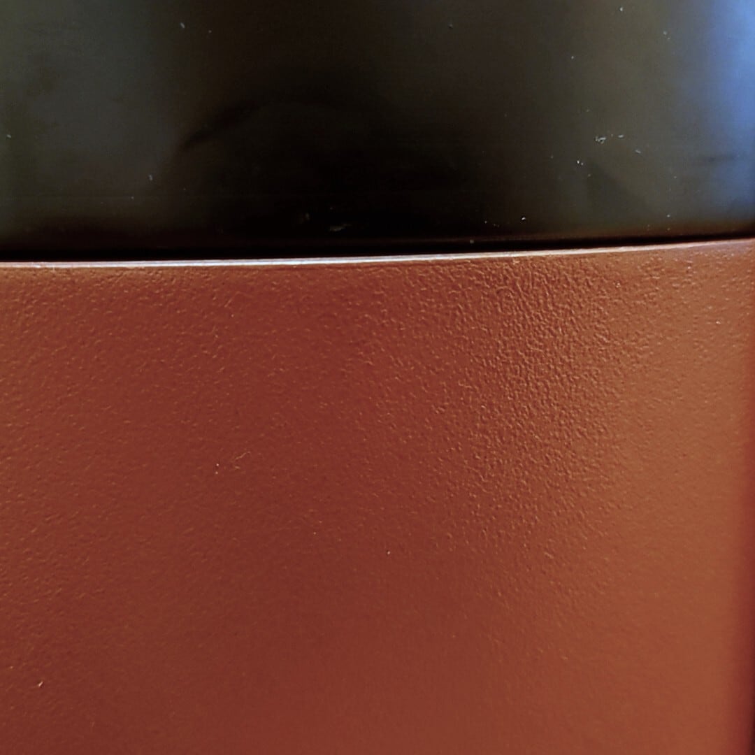 チークプライウッドに朱と黒の漆のような塗装を施した、茶櫃とは思えない非常にモダンなデザイン。