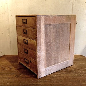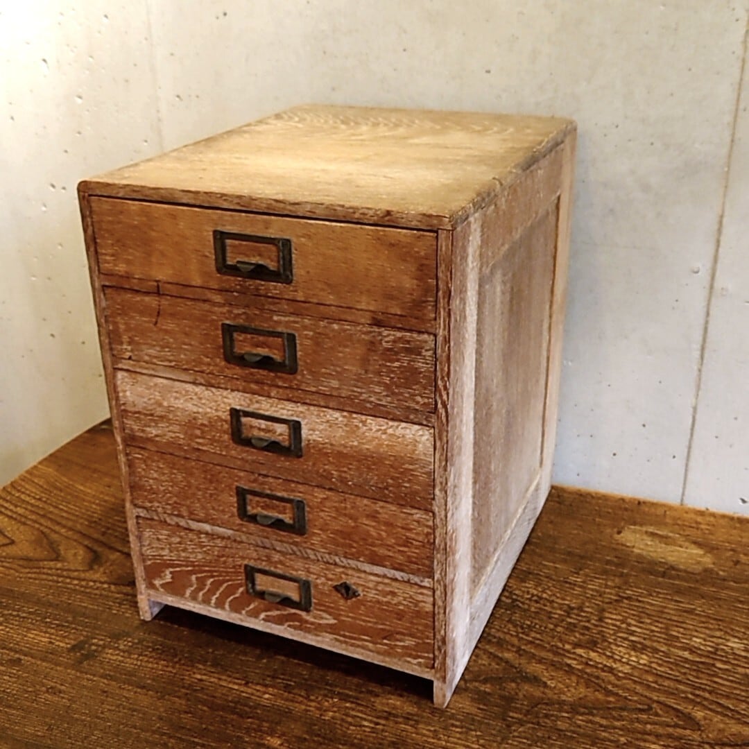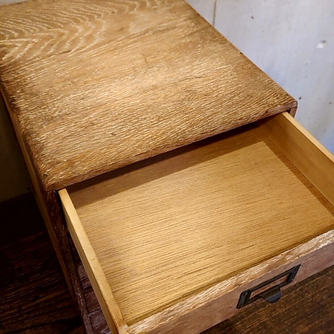 経年による木味の変化に楢材の美しい木目、使い勝手の良いサイズや引手の意匠など、古家具としての理想的な要素を備えた優等生です。