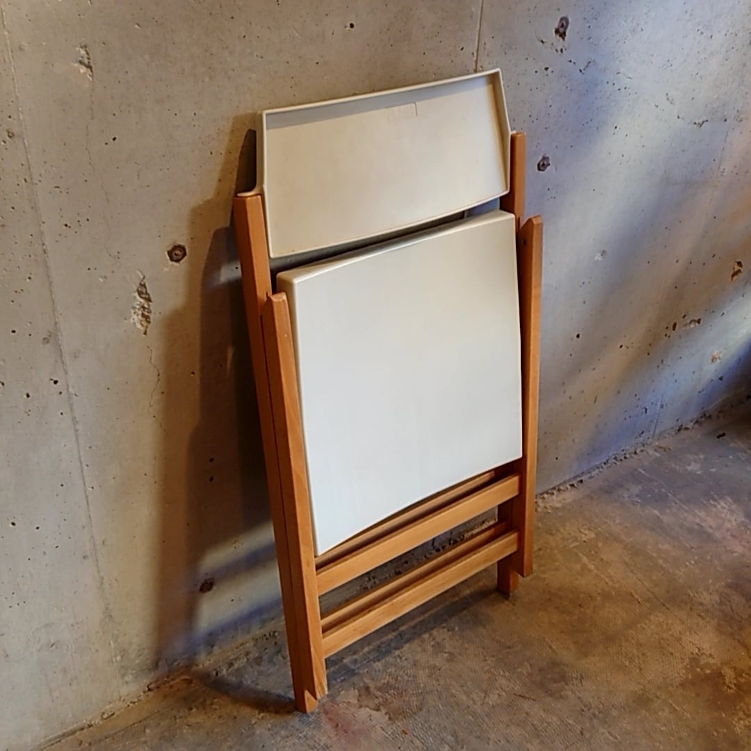 温かみのあるブナ無垢材フレームとプラスチック製のシートを組み合わせたイタリアブランドらしいモダンなデサインに、折りたたむと非常にフラットになるため、家具の隙間やクローゼットにすっきりと収納可能なコンパクトさも魅力です。