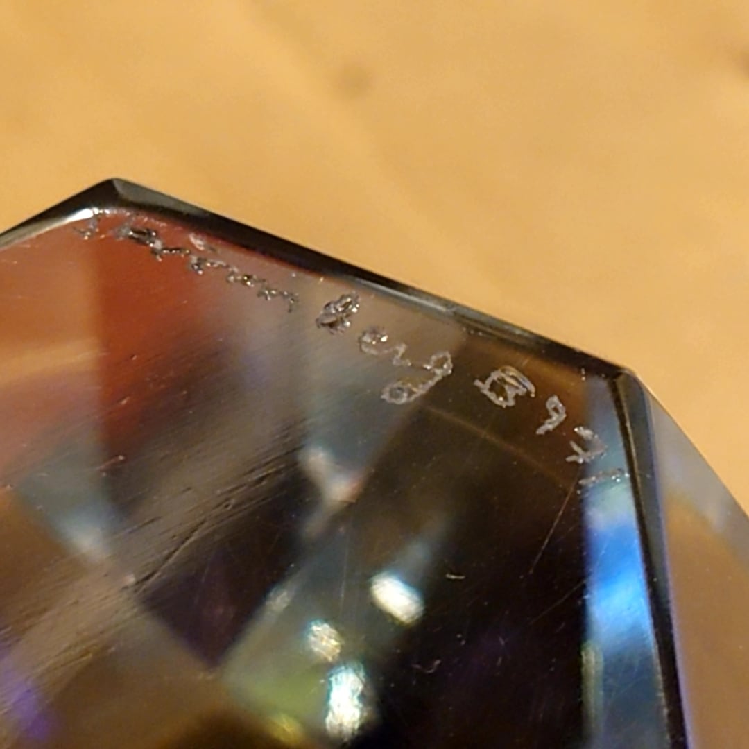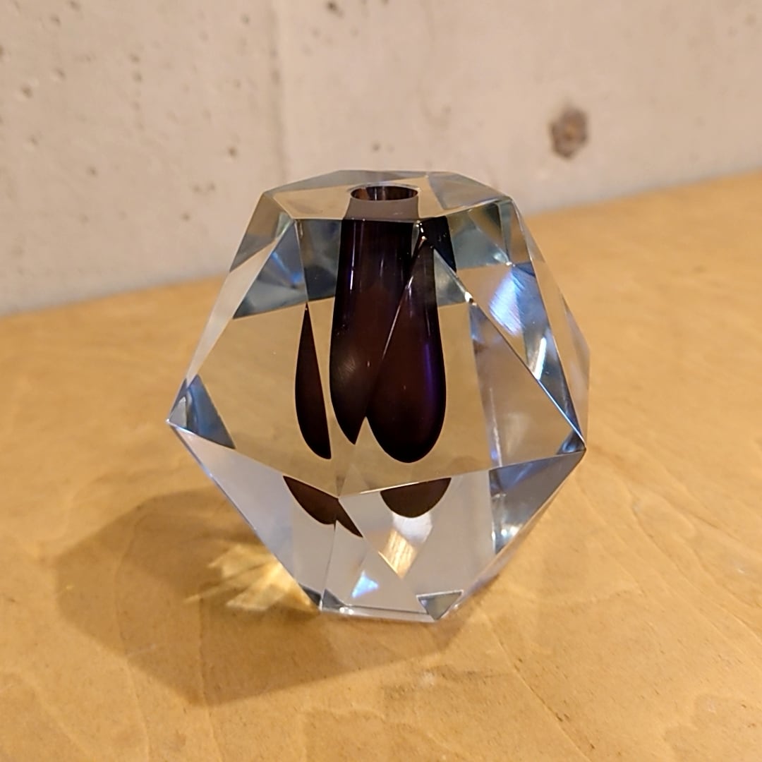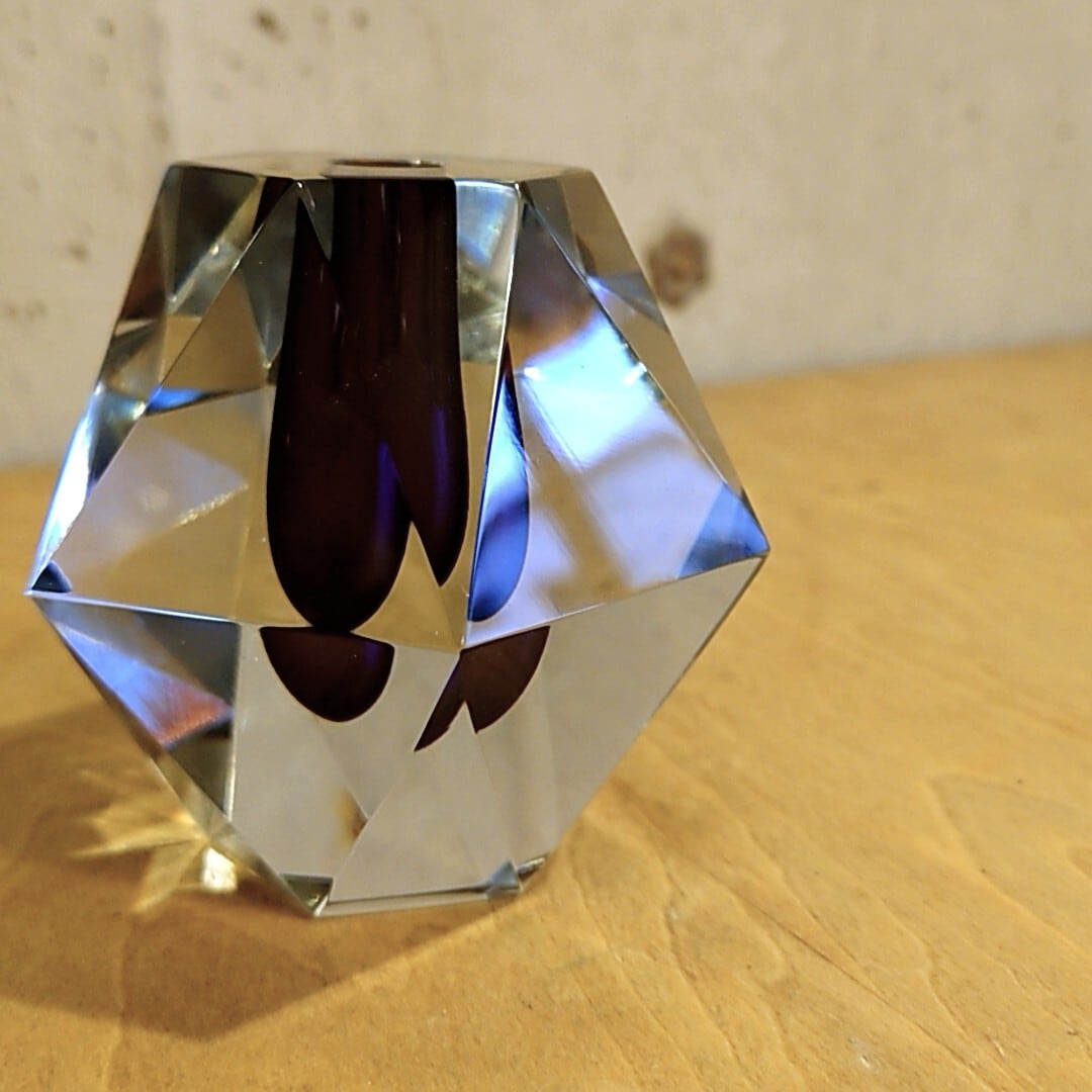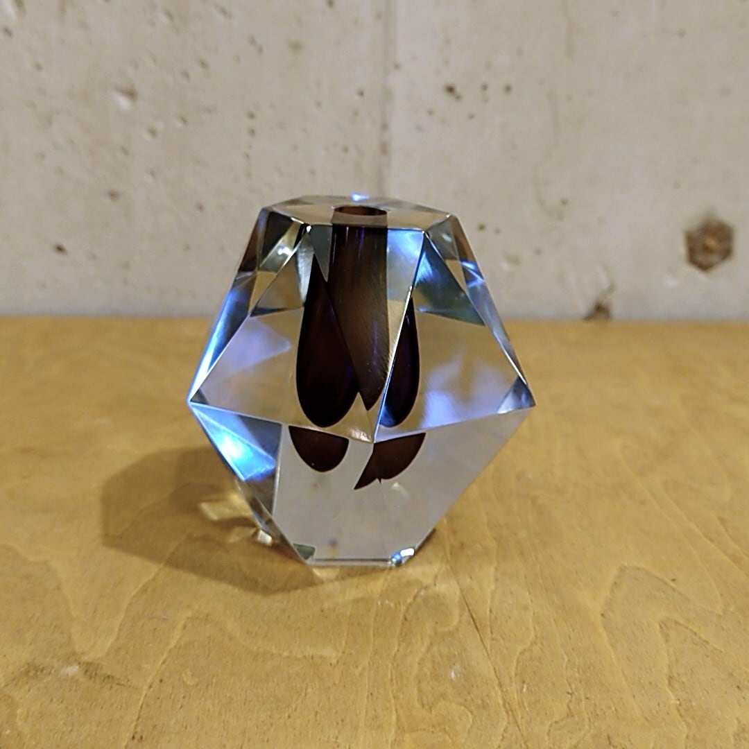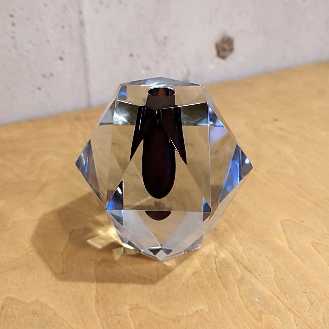 ダイヤモンドを彷彿とさせる緻密な多面体カットが最大の特徴で、透明度の高い厚手のクリスタルガラスが光を複雑に屈折させ、見る角度によって多様な美しい表情を見せてくれます。