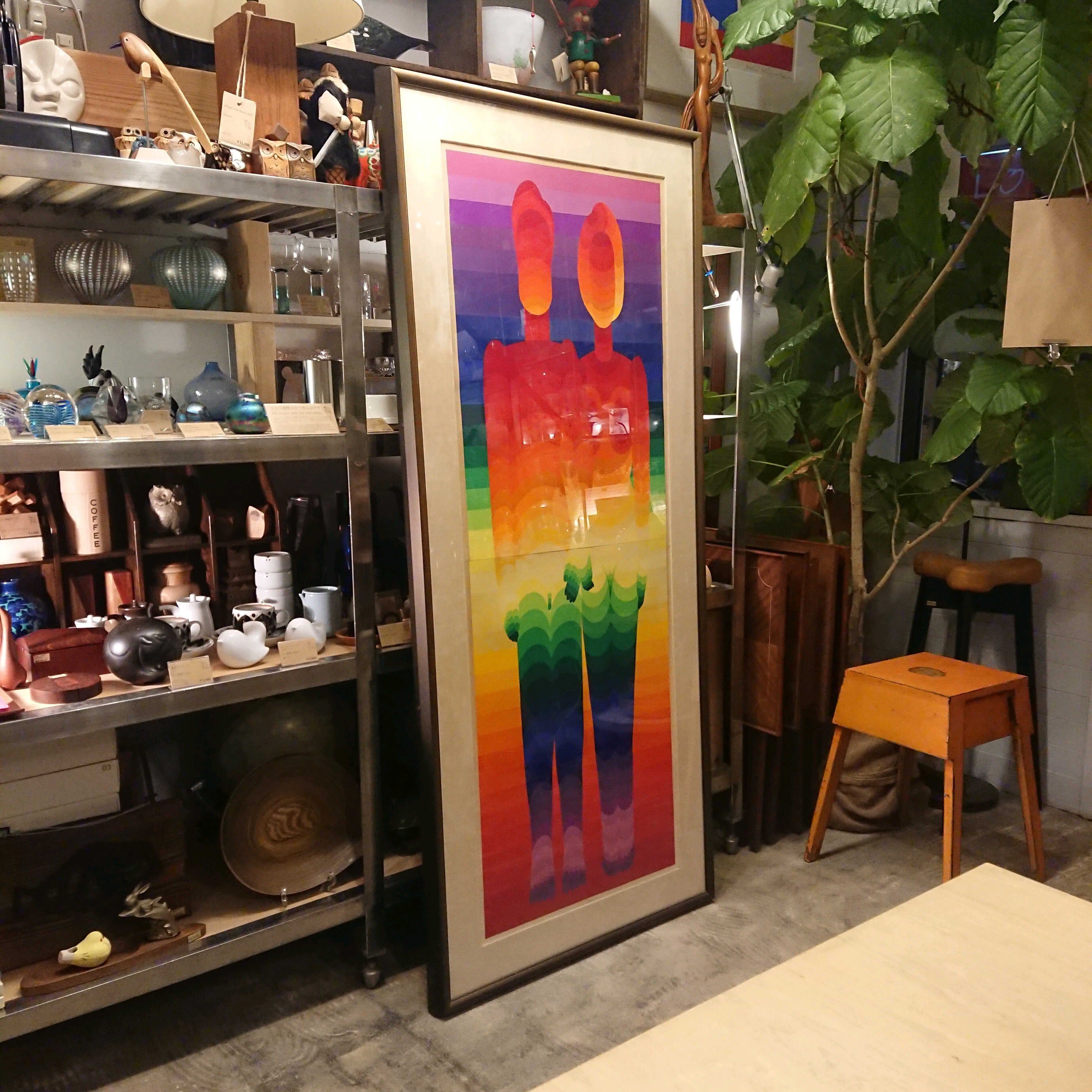 タイトルは不明ですが、虹のスペクトル・カラーの男女が画面全体に描かれた代表的なモチーフ。